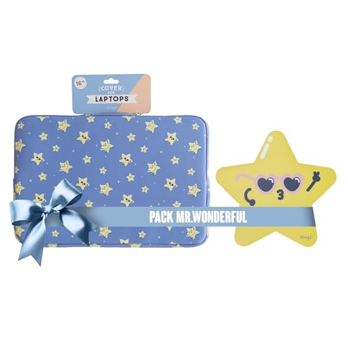 WONDEE Mr Wonderful originalgåvor, laptopfodral upp till 40 cm (16 tum) + stjärnmatchande musmatta - originalpresenter till kvinnor, tonåringar, pojkar och flickor