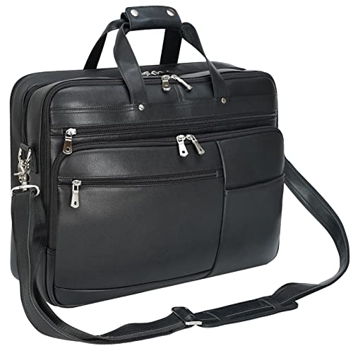 Stor affärsportfölj i läder för män 18 tum blöja läder laptopfodral messengerväska passar 17,3 tum bärbar dator (svart)