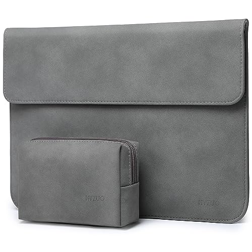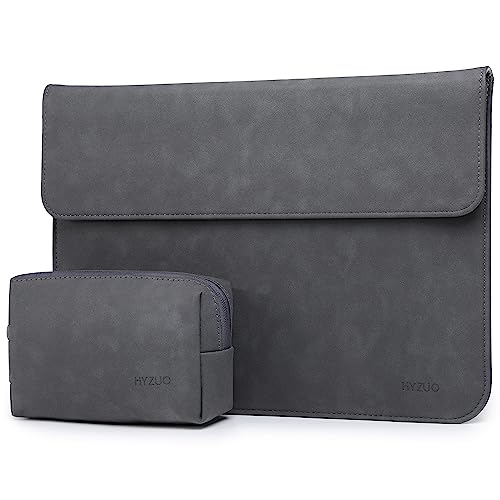 HYZUO 13,3-14 Tum Laptopväska Fodral för MacBook Pro 14 M5/M4/M3/M2/M1 Pro/Max 2026-2021, 13,3" MacBook Air/Pro, 13,5-13,8 Surface Laptop, HP Envy 13, Faux Suede Läderfodral med Påse, Rymd Grå