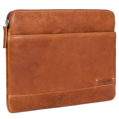 STILORD "Wilson" läderfodral 13" vintage Macbook laptopväska, kompatibel med 13,3 14" Organizer A4 äkta läder, Kara - konjak, L, Portfölj