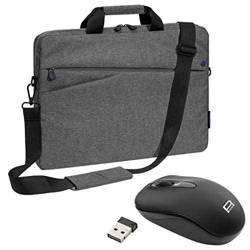 PEDEA laptopväska "Fashion" bärbar väska upp till 13,3 tum (33,8 cm) axelväska med axelrem inkl. trådlös mus, grå/blå