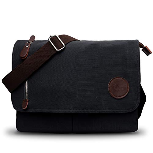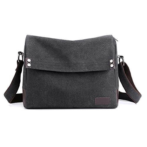 CORIOS Axelväska för män kanvas crossbody väska avslappnad messengerväska laptopväska för 13,3 tum bärbar dator portfölj skolväska för resor arbete skola pendling, Svart, Large