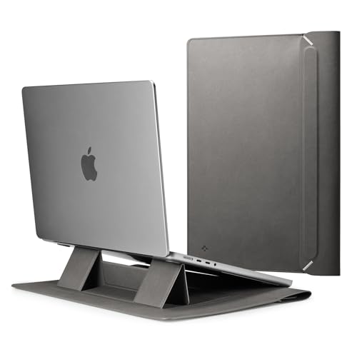 Spigen Valentinus S laptopväska fodral 13 13,3 14 tum, läder laptopfodral kompatibelt med MacBook Pro/Air, M1/M3, Dell, Acer, ASUS, Hp, Lenovo osv – grå