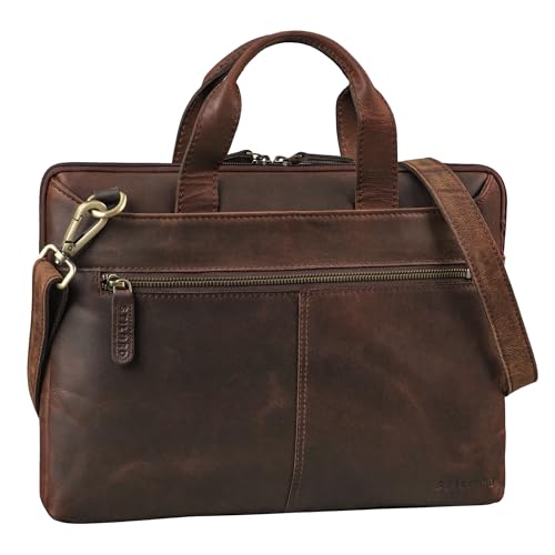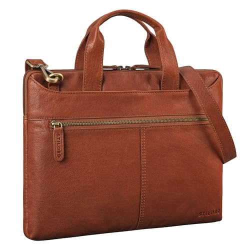 STILORD "Stellan" Smal Laptopväska Läder 13,3-14 Tum Herr och Dam för att hänga - idealisk som bärväska i äkta läder Farbe:Zamora-brun