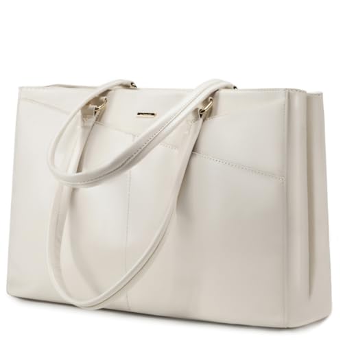 LOVEVOOK Laptopväska dam, handväska dam arbetsväska lärarväska stor, vattentät shoppingväska axelväska portfölj axelväska väska väska för affärsskola (1-beige, 15,6 tum)