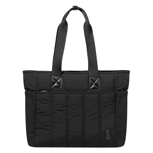 VASCHY Laptopväska för kvinnor, vattentålig tygväska passar 15,6-tums bärbar dator stor kapacitet damhandväska, Svart, En storlek, ledig