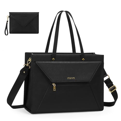 MOSISO Laptopväska för kvinnor, 15,6 tum PU-läder bärbar dator tygväska kompatibel med MacBook, HP, Dell, Asus Notebook, 16 tum arbetshandväska med kuvertväska kontor ledig, svart