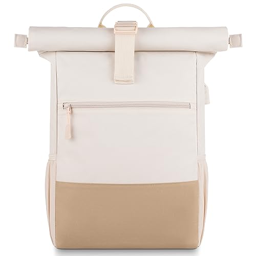 RJEU Laptop ryggsäck för 17 tum, rulltopp ryggsäck män kvinnor, laptopväska för skola, studierum, resor, skolryggsäck (kakibeige-26 l)