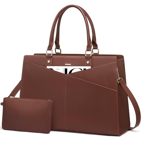 RAINSMORE Laptopväska dam 15,6 tum shoppingväska väska stor handväska med plånbok arbetsväska portfölj PU-läder lärarväska affärsväska, Mörkbrun, 15,6 Zoll