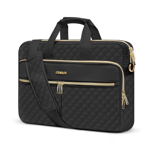 MOSISO 15-15,6 tum laptopväska, portfölj för kvinnor och män, 40,6 cm fyrkantig quiltad dator messengerväska kontor resa affärer med 3 fickor och rem, svart