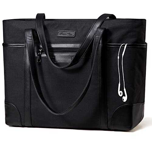 Laptopväska för kvinnor, ChaseChic vattentät stor tygväska klassisk lärarhandväska skola axelväska, 15,6 tum datorarbetsväska med bagagerem, Svart-15.6, Large