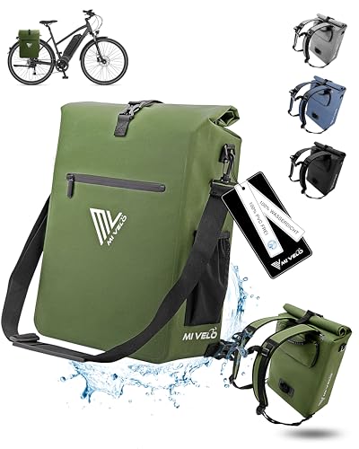 MIVELO Cykelväska för pakethållare – 3-i-1-pakethållarväska, ryggsäck, axelväska – 100% vattentät och PVC-fri – med urtagbar laptopväska, 25 l, olivgrön