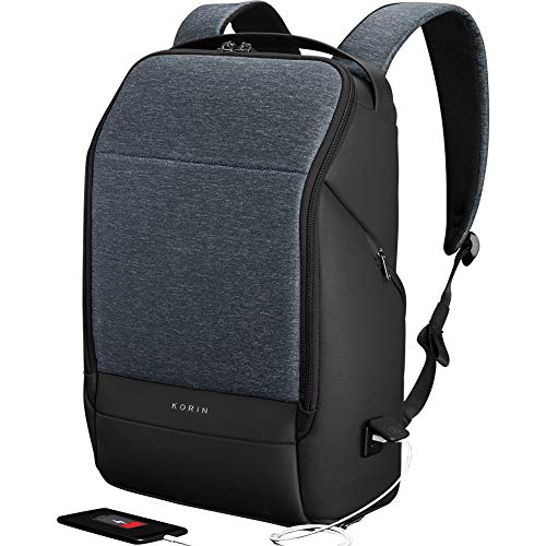 KORIN Design FlexPack Pro – multifunktionell flexibel stöldsäker reseryggsäck 15,6 tum laptopväska med 2,0 USB-laddningsport stor kapacitet vattentät TSA