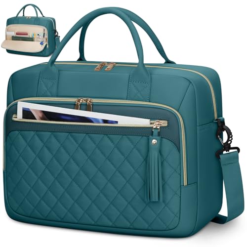 RAINSMORE 17-tums bärbar datorväska dam arbetsväska stor bärbar dator väskor och fodral vattentät laptopväska dam axelväska, Mörkgrön, 42