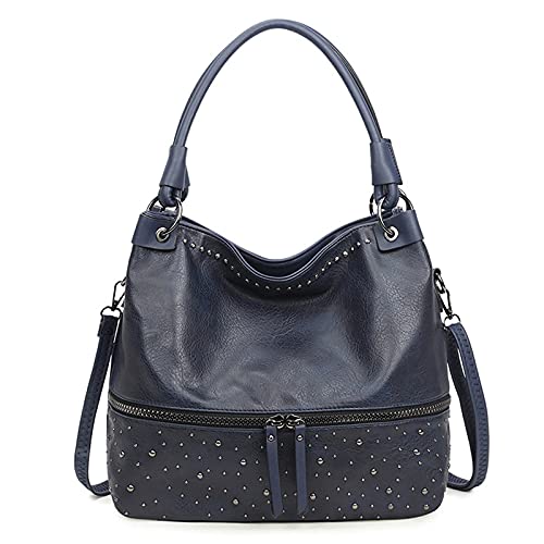 FANDARE Retro handväskor dam axelväska dam PU-läder vattentät bärväska stor kapacitet nit för 12,9 tum laptopväska crossbody shopper resor arbetsväska, blå, Retro