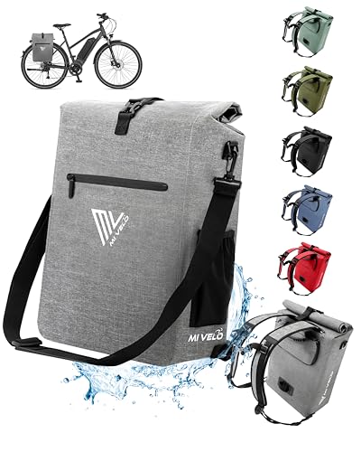 MIVELO Cykelväska för pakethållare – 3-i-1-pakethållarväska, ryggsäck, axelväska – 100% vattentät och PVC-fri – med urtagbar laptopväska, 25 l, grå