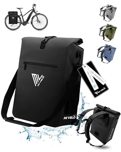 MIVELO Cykelväska för pakethållare – 3-i-1-pakethållarväska, ryggsäck, axelväska – 100% vattentät och PVC-fri – med urtagbar laptopväska, 25 l, svart