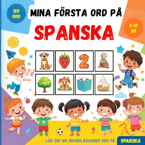 Mina första ord på Spanska: Tvåspråkig bildlexikon svensk–spansk för barn och nybörjare, för att lära sig grundläggande spanska ordförråd.
