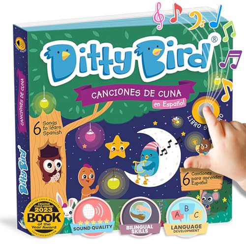 DITTY BIRD Tvåspråkig interaktiv spansk barnkammare rimljudleksak. Canciones de Cuna för spädbarn och småbarn för att lära sig spanska. Perfekta ljudböcker för undervisning av låtar på spanska.