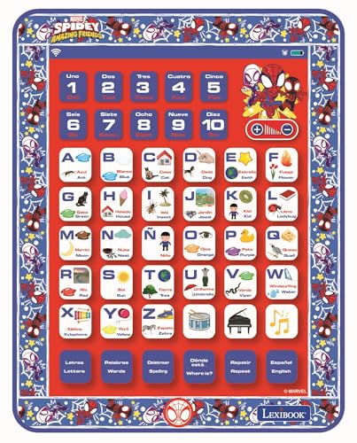 Lexibook, Spidey och hans superlag, tvåspråkig-engelska/spanska-leksak för att lära sig att berätta, ordförråd och göra musik (JCPAD002SPi2)