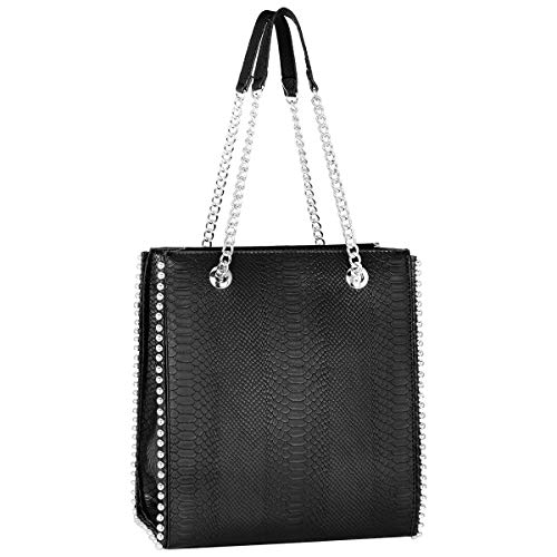 CRAZYCHIC - Dam Liten Axelremsväska - Orm PU Läder Axelväska - Dam Handväska Kedja - Kvinnor Tote Bag Shopper Nitar Pärla - Väska Shoppingväska - Mode Vardag Kontor Chic Arbete Elegant - Svart Orm