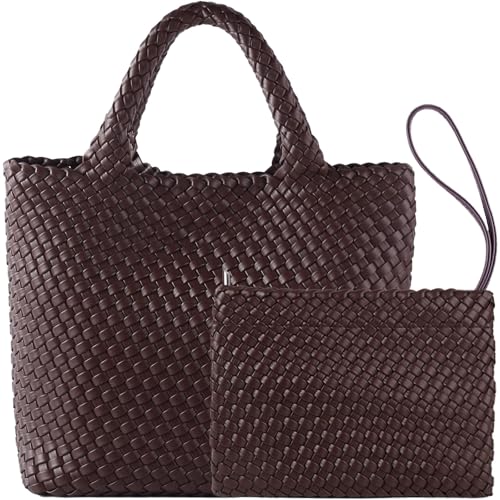JINMANXUE Fashion Woven Bag Shopper Bag Travel Handbags and Purses Women Tote Bag Large Capacity Shoulder Bags (Coffee)