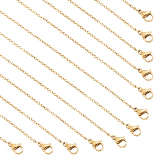NBEADS 20 st smyckekedja, 304 rostfritt stålkedjor, 50 cm rostfritt stål karbinhake lås kabelkedja för gör-det-själv halsband, guld
