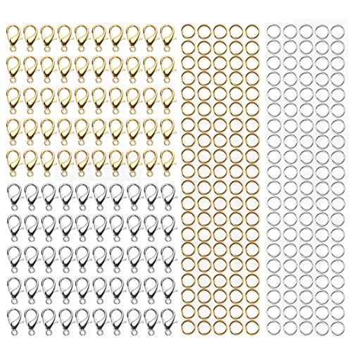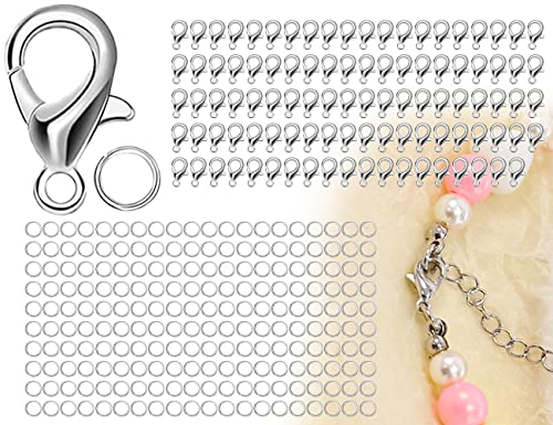 ZoeTekway 300 stycken kedjelås-set, 100 stycken hummerlås silver smyckeslås med 200 stycken öppna böjringar, lås för armband halsband, smyckestillverkning (silver)