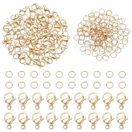 PH PandaHall 120 st 4 mm öppna hoppringar guld rostfritt stål med 60 st hummerklo lås, smyckessats armband tillbehör halsband örhängen nyckelring hantverk
