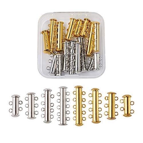 PandaHall 16 uppsättningar gyllene och platina mässing flertrådiga magnetiska glid-lås spännen halsband armband smyckestillverkning rörspännen