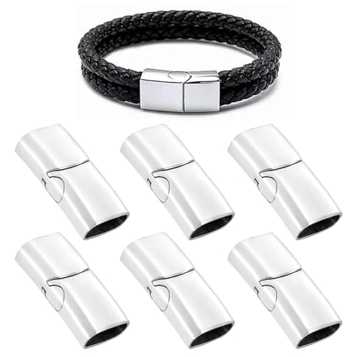 6 stycken armband magnetlås, rektangel stängning för smycken, 12 x 6 mm silver magnetiskt lås smycken rostfritt stål för läderband halsband spänne borrning
