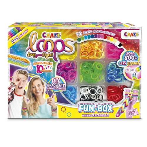 Craze loops Fun BOX – Loom bandset med 800 gummiband, lås och hjälpare – halsband, ringar och armband gör det själv