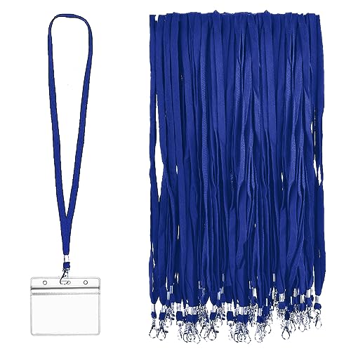 45 cm nyckelband, 200 stycken nyckelband, nyckelband, snodd, halsband, vridbart lås, cape med karbinhake, kontor, bricka för ID-kort, ID-kort, nyckel för ID-kort (blå)