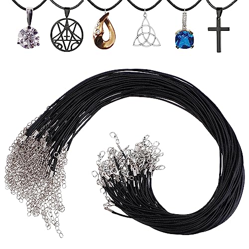 50 st svart halsband sladd halsband snöre med lås vaxat läder halsband sladd för berlocker hängen smyckestillverkning, 45 cm