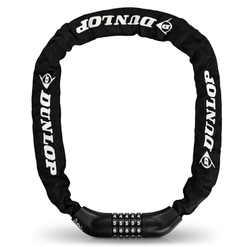 Dunlop Kättinglås med kombinationslås, hög säkerhet, 100 cm långt, säkerhetsnivå 6, lås med 5-siffrig kod, kättinglås för elcykel och elscooter, kodlås
