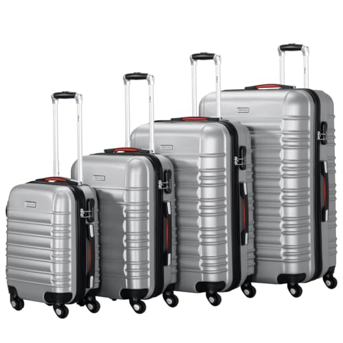 PROVITERA Set med 4 hårda ABS-väskor, hårda resväskor S-M-L-XL teleskopiskt handtag och 4 hjul lättrullande lås, kodlås, hållbara resevagnar, med handbagage, Silver, 50x32x75 cm, Modern