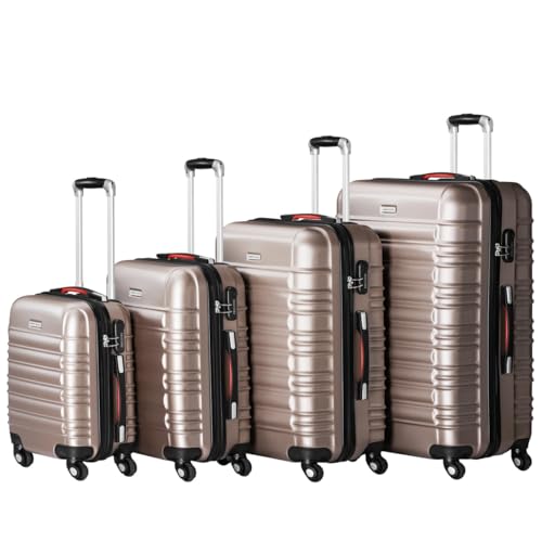 PROVITERA Set med 4 hårda ABS-väskor, hårda resväskor S-M-L-XL teleskopiskt handtag och 4 hjul lättrullande lås, kodlås, hållbara resevagnar, med handbagage, Champagne, 50x32x75 cm, Modern