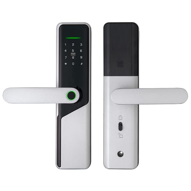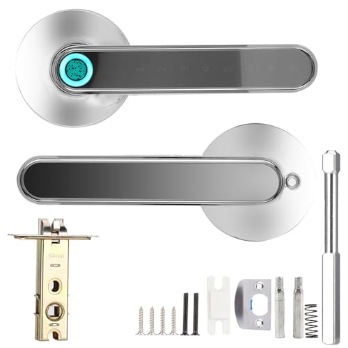Fingeravtryck dörrhandtagslås, fingeravtryck/lösenord/app/tillfälligt lösenord 4-i-1 lås elektroniskt dörrlås, stöldskydd bluetooth dörrlås (silver)