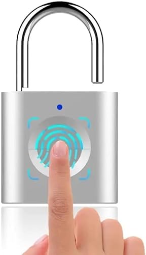 Fingeravtryckslås, smart lås vattentät, fingeravtryck hänglås, USB-laddning biometrisk hög säkerhetslås för gym lös, bagage, spindel (silver)