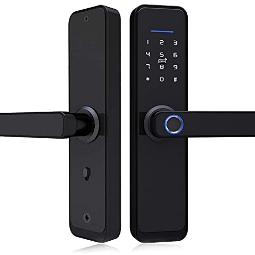Smart dörrlås, Biometriskt fingeravtryck Dörrlås K7 Pro+ Svart Smart Lock Tuya App Fjärrlås upplåsning Nyckellöst lås Elektroniskt dörrlås för ytterdörr(22x225 R)