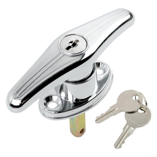 HEBEOT Kraftigt garagedörr, lås, T-handtag, vattentätt med 2 nycklar för släpvagn, husvagn, baldakin, 10 x 8,55 cm