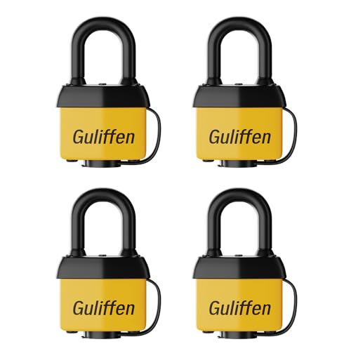 Guliffen Väderbeständigt laminerat hänglås med nyckel, 4-pack utomhus dyna lås med samma nyckel för grind, skjul, släpvagn, förvaring, kedja