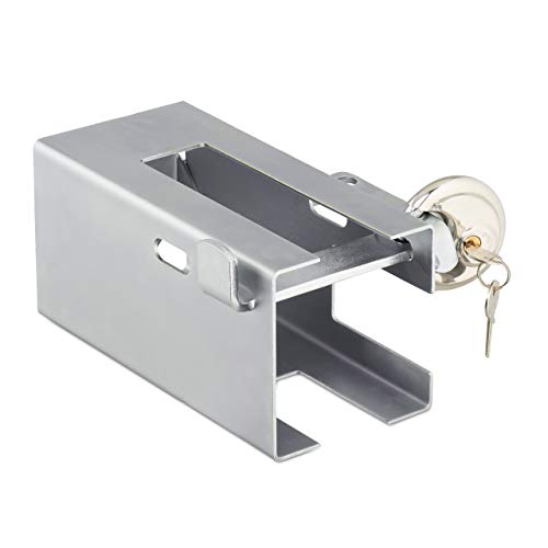 Relaxdays 10031042 släpvagnslås, vanligt för vanliga kopplingar, stöldskydd, runt lås, släpvagn, stål, silver, 11 x 15 x 23,5 cm