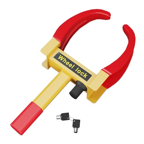 Relaxdays Cepo bil, anti-stöldhjul husvagn eller släpvagn, med lås, pneumatisk startspärr, stål, gul/röd, plast, 47,5 x 23,5 x 7 cm