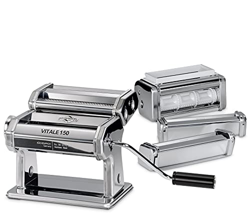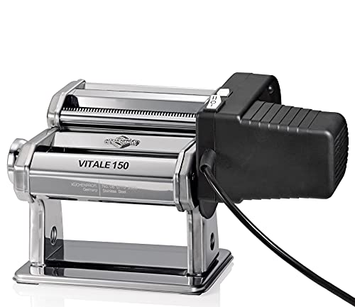 Köksprofi Elektrisk pastamaskin VITALE 150 set | inkl. motor, 3 rullar/tillbehör, pastaskärare | 2 hastighetsinställningar | rostfritt stål | lasagneplattor, daggliolini med mera