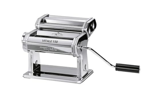 Köksprofi Manuell pastamaskin VITALE 150 set | inkl. 6 rullar/tillbehör, pastaskärare | för 7 degtjocklekar | rostfritt stål | lasagneplattor, spaghetti och mer | motor säljs separat