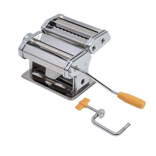 Köksprofi Pastamaskin manuell VITALE | för 7 degtjocklekar | tillverkad av rostfritt stål | lasagneplattor, daggliatell med mera | inkl. pastaskärare, 3 tillbehör | motor säljs separat