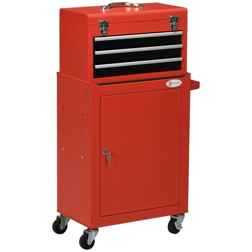 Låsbart koffertskrin med handtag, stål, röd, för verktyg & förvaring