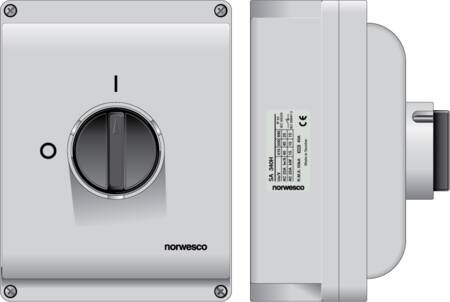 Säkerhetsbrytare 40A 3P+H+J Grå med svart låsbart handtag 4x...