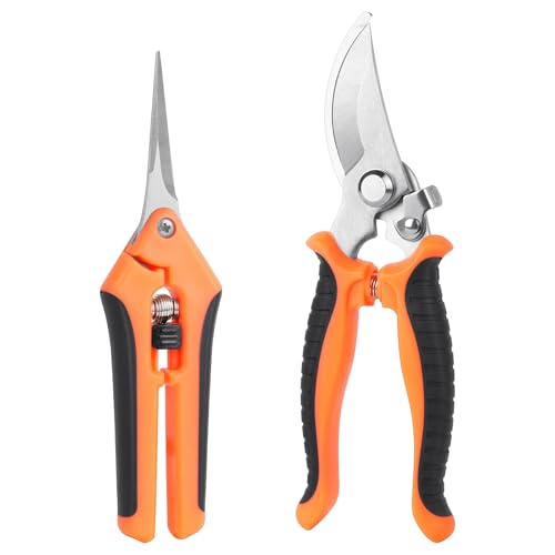 OFFCUP Trädgårdsbeskärare, 2 st fransar, professionell sekatör med låsbart handtag, sekatör för kurirgrenar för att skära trädgårdar, buskar, staket (orange + grön)